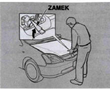 Jeżeli możliwe jest podniesienie maski bez zwolnienia dźwigni zaczepu maski lub dźwignia ta przesuwa się ciężko ewentualnie nie powraca w poprzednie położenie należy oczyścić ją i nasmarować zamek maski silnika (patrz str.