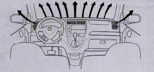 Kierunek nawiewu powietrza z nawiewów bocznych i z nawiewów centralnych deski rozdzielczej jest regulowany.