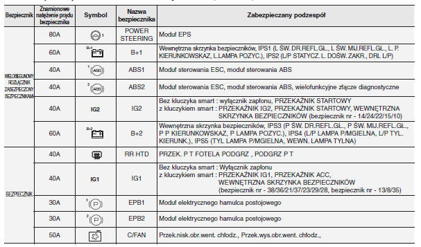 Naklejka na pokrywie bezpieczników może różnić się od tej która jest pokazana w instrukcji.